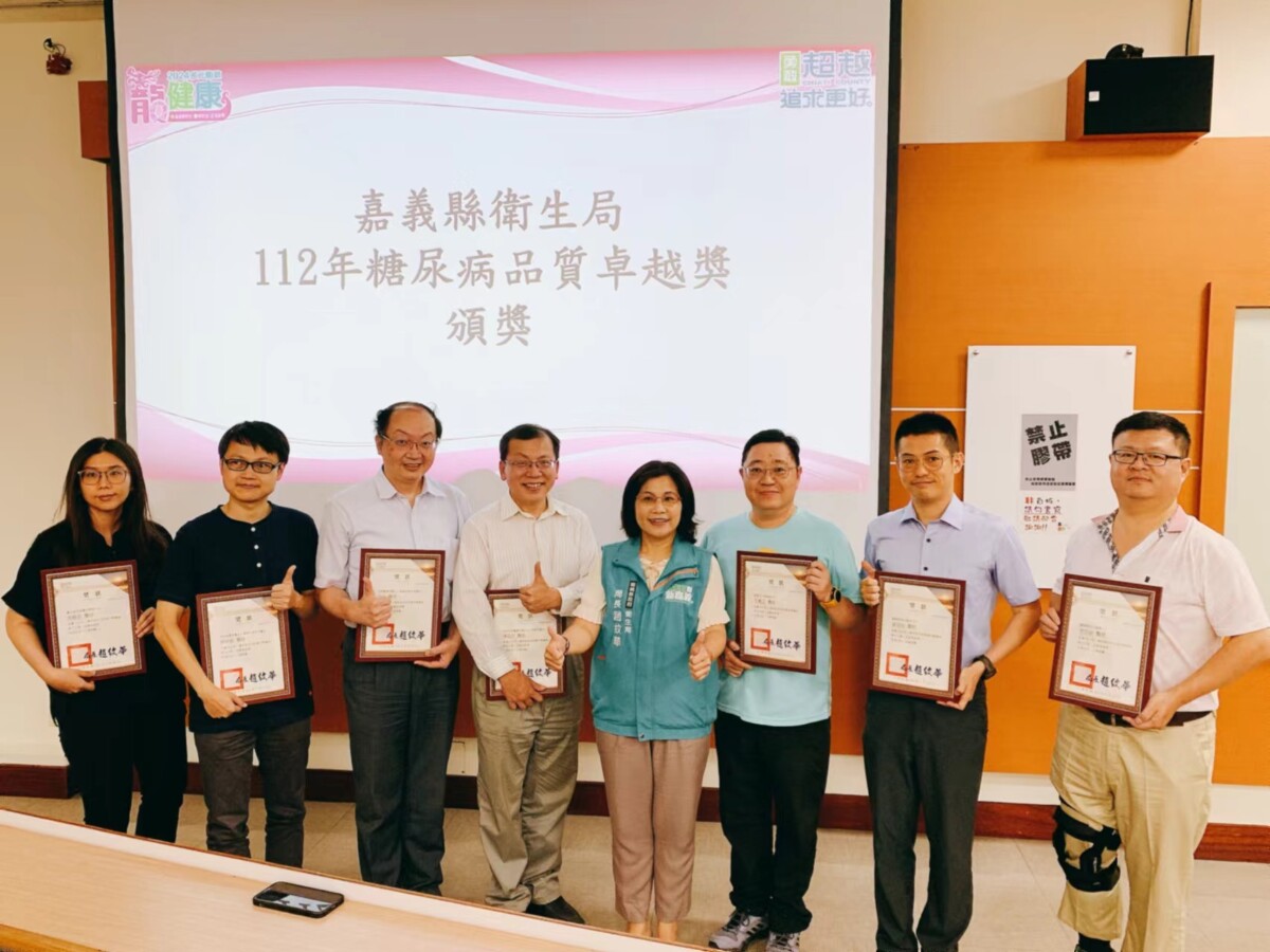 圖:嘉義縣輔導轄內醫療院所參加「全民健康保險糖尿病醫療給付改善方案」,13位醫師榮獲112年品質卓越獎,22日衛生局於會議上公開頒獎,其中4位為連續3年以上得獎診所,衛生局長趙紋華更親自到診所鼓勵。(記者吳瑞興翻攝)