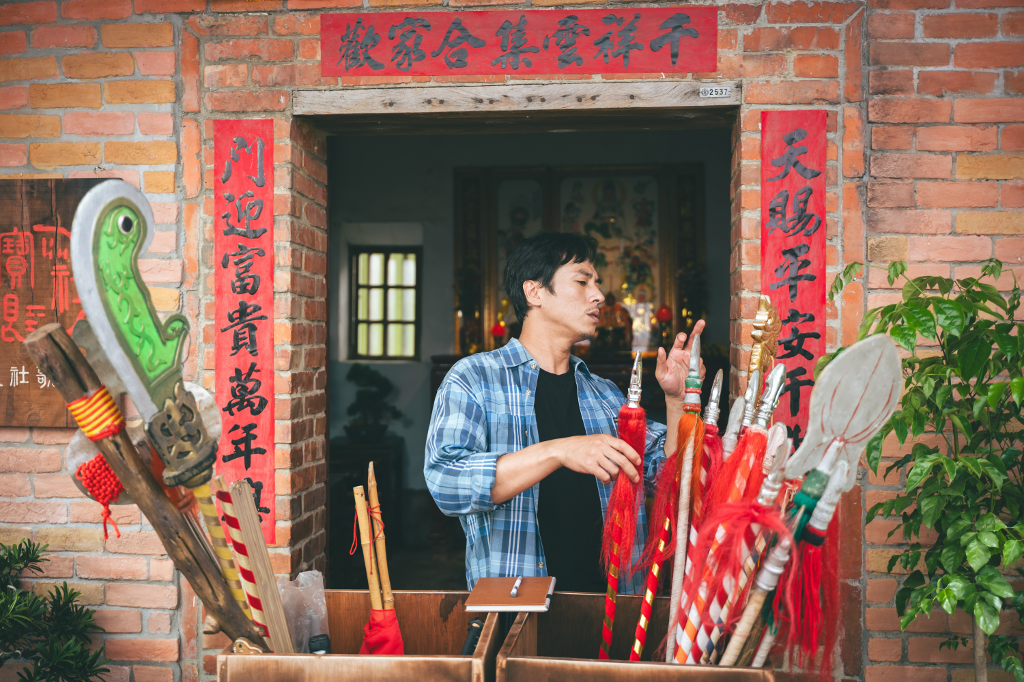 ▲ 年輕時的莊凱勛,認真整理並清點戲班刀槍道具。(圖:公視台語台、華視)