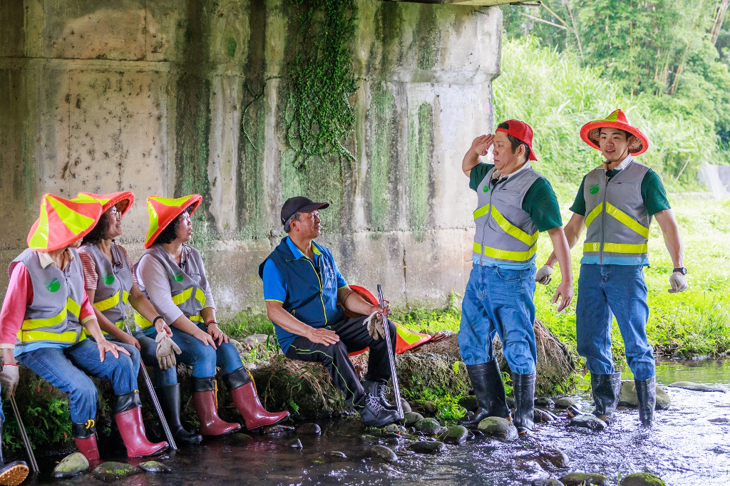 ▲ 清理河川工作,卜學亮(右二)燃起里長魂。(圖:八大)