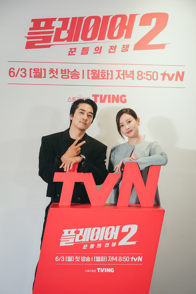 《玩家》系列經典韓劇暌違六年再推續作!由韓國男神宋承憲率領原班人馬李施彥、太元碩,搭配新加入的吳漣序、女團fromis_9前成員張圭悧,共同主演的犯罪動作劇《玩家2》即將於下週開播。在28日(二)的記者會上,宋承憲被說是「韓版阿湯哥」好開心,不僅許願《玩家》系列拍到第10季,還希望能像阿湯哥一樣登上杜拜最高樓秀高難度動作,沒想到導演聽了反應卻超「漏氣」。