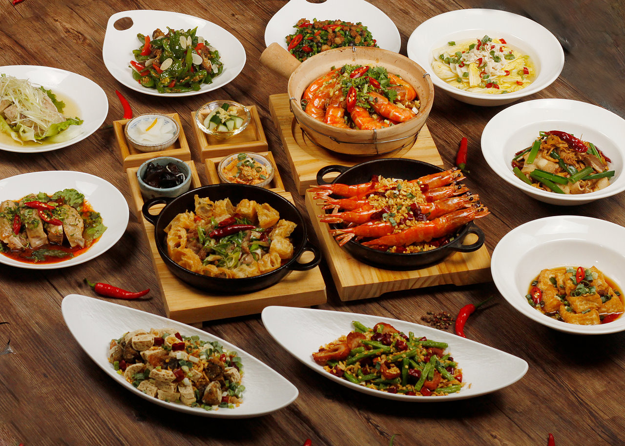 主廚特色川菜「蜀川香雙寶」是以獨門特調的川味醬汁,加入煎炸過的米血糕、皮蛋、蔥段及乾辣椒入鍋爆香,微辣鹹香的滋味,老饕必吃!另一道主廚推薦料理「蜀川香催淚蛋」特選彰化土雞蛋煎炸至半熟,並加上主廚特製醬汁、國產豬絞肉、花椒小火煨煮,噴香而不辣,每一道菜品都來自主廚的巧思和用心,讓客戶在享受美食的同時,也能感受到對料理的熱愛。
