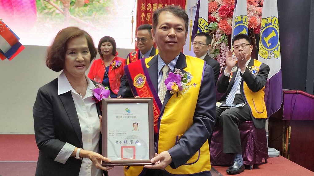 ▲縣長林姿妙頒發新會長陳金池當選證書。