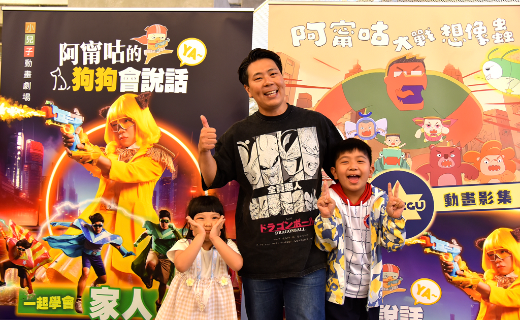 ▲ 邵大倫攜一雙兒女參與阿甯咕親子音樂劇。(圖:夢田影像)