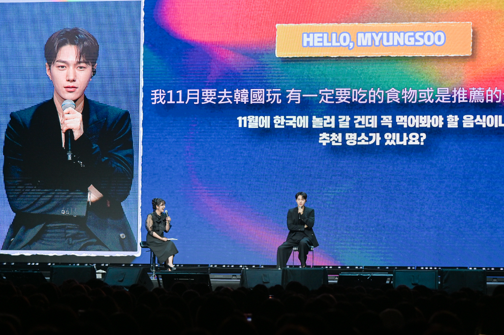 在第一個問答環節中,有粉絲問到他長得帥氣是否有為生活帶來不便,金明洙笑說:「因為職業的關係,有時候不能好好吃東西比較困擾。」「我非常喜歡吃東西,這次大家也為我送來了非常多東西,像是雞排、和很多食物,但是我都不能吃,要等到演出完才能大吃特吃」,不忘提醒工作人員「這些是我的!」可愛舉動笑翻眾人。