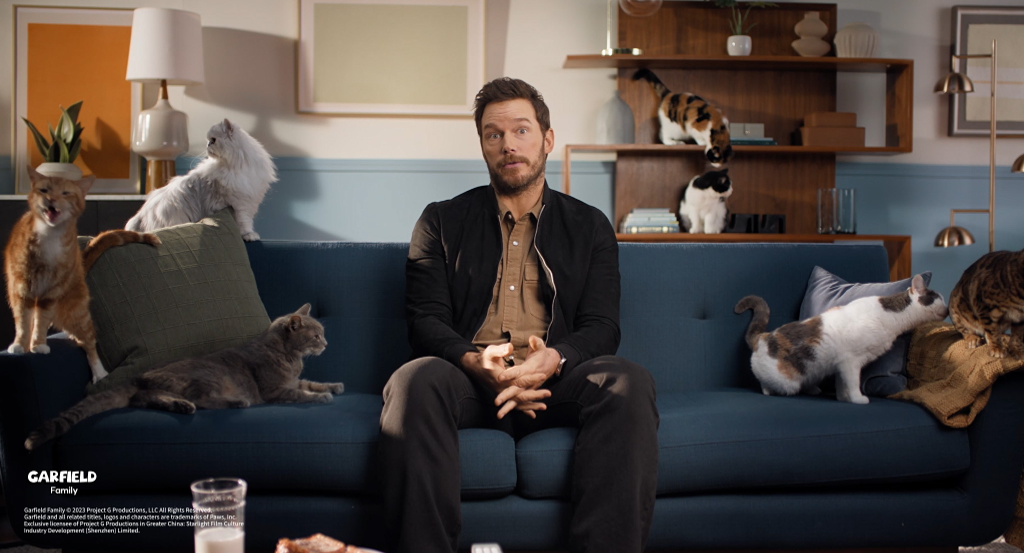 《加菲貓:農場大冒險》由「星爵」克里斯普瑞特配音,帶領觀眾進入一場充滿冒險與幽默的旅程。克里斯普瑞特為了揣摩貓咪個性特別與多隻貓咪相處,在這期間他完全沒說話,只有發出喵的聲音,克里斯普瑞特笑稱「因為太過融入貓咪生活反而迷失了自我,整天就只有吃跟睡,後來才知道原來加菲貓也是會說話的。」