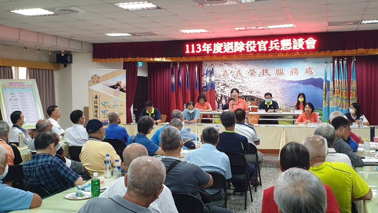 〔今傳媒/記者呂明鴻報導〕嘉義榮民服務處於6/20日舉辦「退除役官兵懇談會」,邀請退除役官兵及退伍軍人社團參與,廣納各方建言與交換意見,以有效解決各項問題,俾利提供更完善的優質照顧服務;現場並邀請嘉義市政府民政處、警察局、消防局及嘉義市長照中心、內政部移民署嘉義市服務站、白河榮家、臺中榮總嘉義分院等多個機關單位,提供資源說明及問題解答,互動十分熱絡。