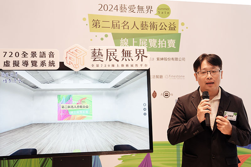 董事長張淯表示,《獨家報導》推動「藝愛無界 2024夏拍」公益活動,要感謝藍訊科技和《獨家報導》團隊同仁的努力和支持,將所有作品放進這套720度3D虛擬展覽館永久典藏,實體作品現在開始競拍,同時也要感謝所有贊助廠商熱心贊助,商品將在《獨家報導》福利社銷售。特別要提到的是,已經有媒體廣告公司注意到我們推動的新科技行銷模式,大展公關將成為我們「藝愛無界 2024秋拍」公益活動的承辦單位,為我們幫助的弱勢團體創造更大的綜效。