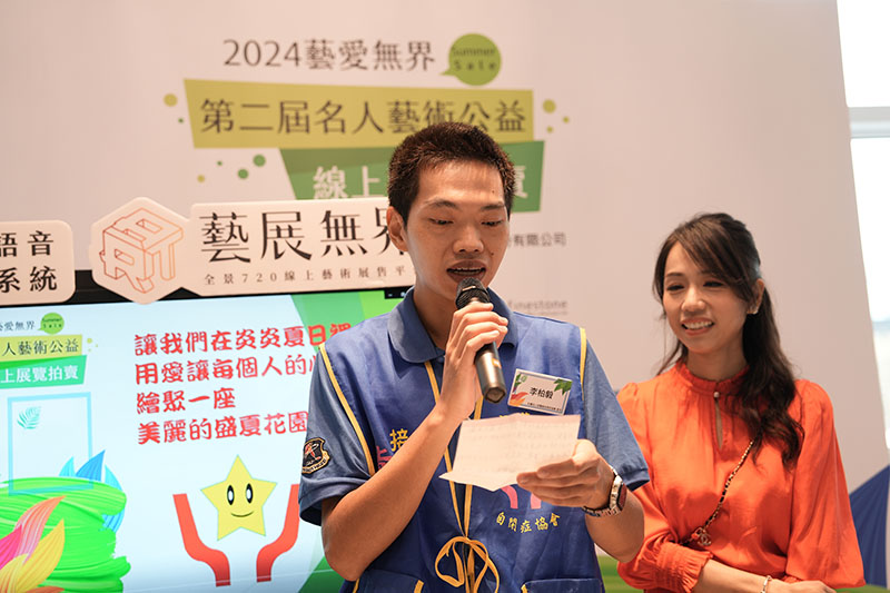 「藝愛無界 2024夏拍」是我們對台灣中小型弱勢團體的承諾,即使我們深深感受到台灣庶民經濟並不好,但是這些弱勢團體募款不易更形窘迫,感謝這次14位名人、藝人、網紅朋友共襄盛舉,其中跆拳道國手蔡苡菲、網紅霆妹陳映彤、網紅山豬妹陳沛冪、藝人羅奕傑,年齡都不到20歲,小小年紀就懂得飲水思源、回饋社會,令人感佩。董事長張淯要再次強調所有親手繪製的作品,線上拍賣所得將全數捐贈給「社團法人宜蘭縣自閉症協會」,公益活動過程由恆勝國際法律事務所資深律師廖廷尉見證。