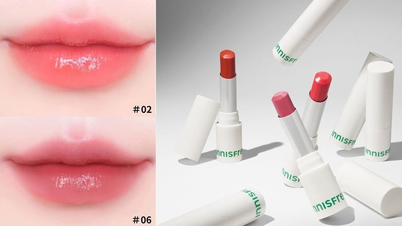 2024偽素顏「有色潤唇膏/水光唇膏」推薦:innisfree 晨露光透水感唇膏 #02蜜糖珊瑚、#06粉霧玫瑰