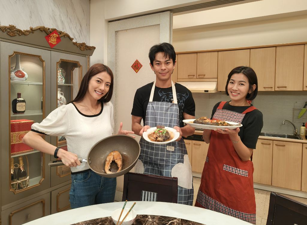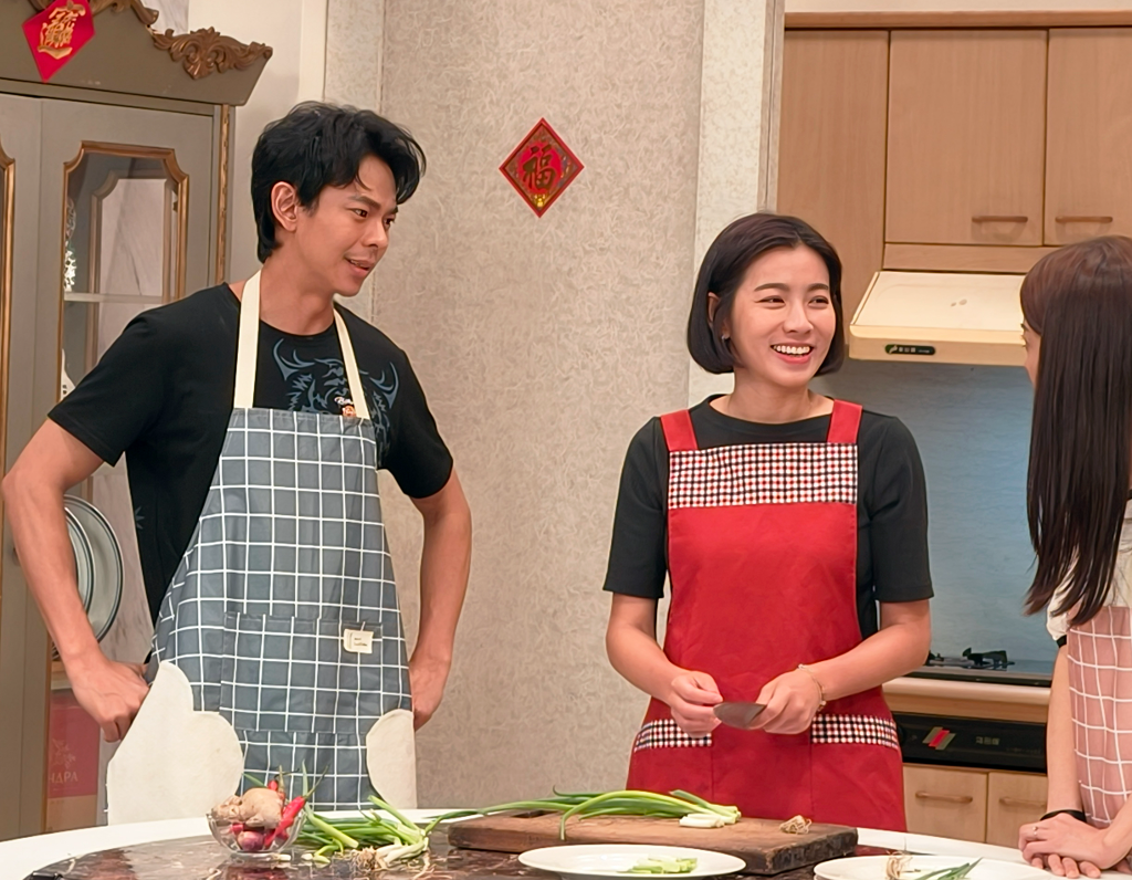 ▲ 米可白(中)劇中承接家業,因此向孫綻(左)學做菜。(圖:台視)