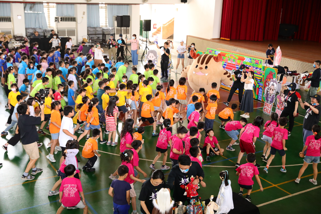 ▲ PILI GILI球尾麒麟帶動跳16蹲,掀起小二生們活力狂舞。(圖:霹靂國際多媒體)