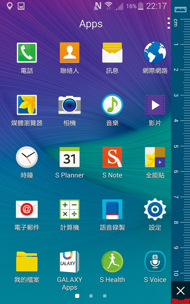 有趣的是選擇實用工具列當中的量尺工具,馬上就能夠將Edge側邊當作是量尺使用,不過因為只有10公分的長度可以進行量測,大概只能拿來量量手指長度。