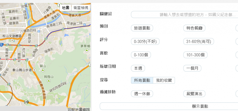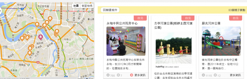 可是有的時候並不是要找某一個特定的親子景點,而是想去某個地方,想找一下待會要去的地方,附近有沒有親子景點,用上面的功能就找不到了。