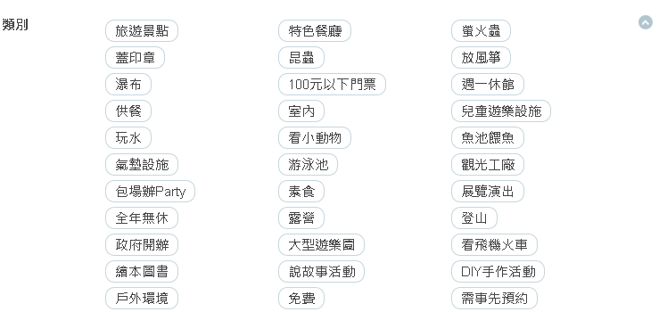 這個是展開的畫面,若沒有特別想要帶小朋友去的類別活動,不選也可以,系統預設會全部列出來。