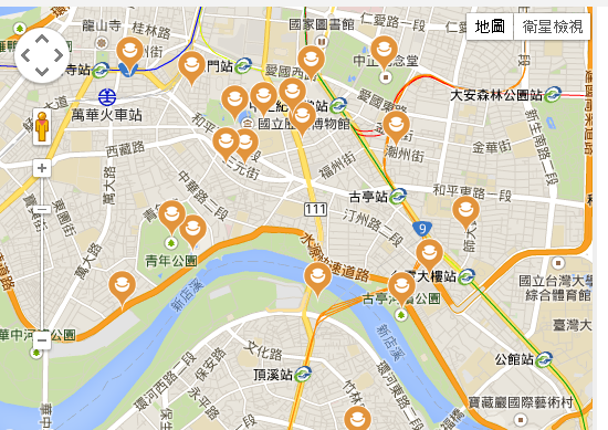 你也可以對著左邊的地圖用滑鼠按住後做拖拉的動作,這個時候地圖上的親子景點跟右邊的景點也會同步更新,方便你查詢。