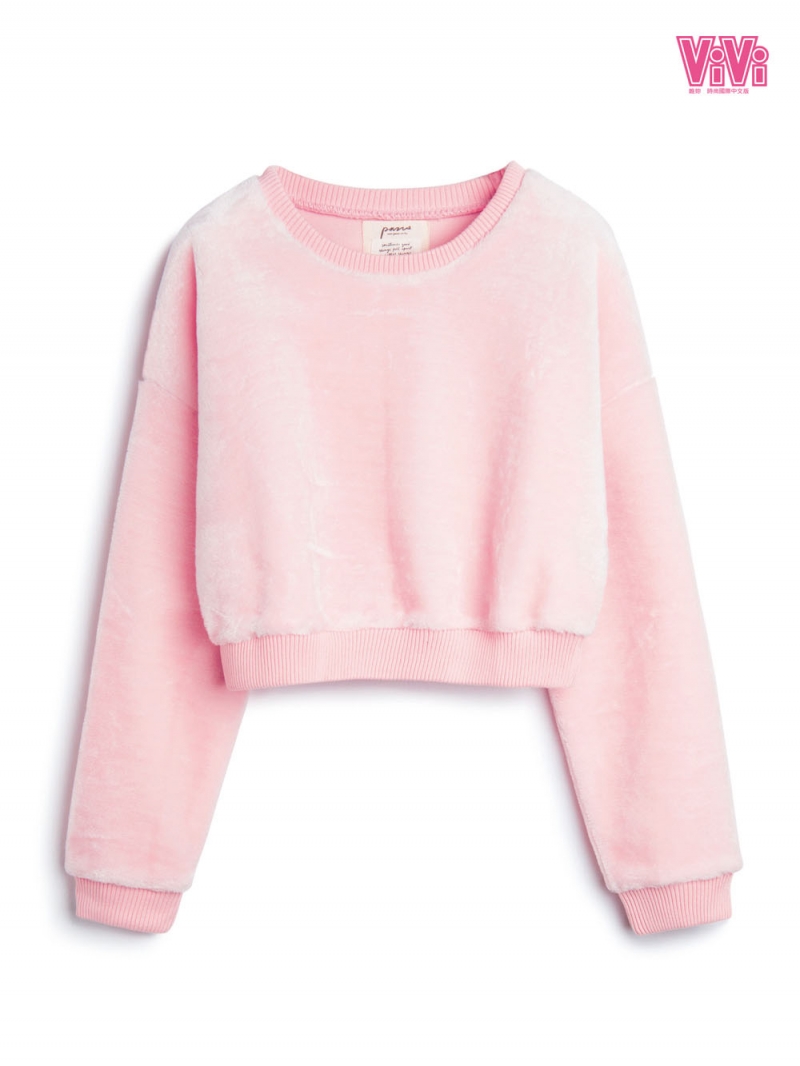 毛茸茸的材質營造夢幻氣息。 牛奶粉紅短版上衣 NT.295/PAZZO