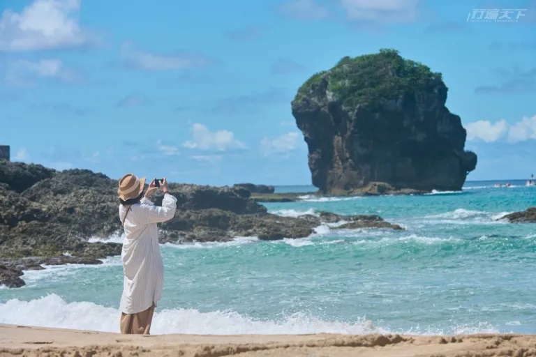 住在船帆石區域過個馬路就能踏浪玩沙。距離旅店只要一分鐘路程的船帆石沙灘,砂質較為粗糙,但比起小灣或是白沙灣,相對人潮較少,更推薦走進綿密沙灘與海的交界處,賞覽墾丁地標之一「船帆石」,這塊高約18公尺的珊瑚礁岩遠望就像揚帆遠航的船而得名,在沙灘上悠閒放空,偶爾飛機劃過天際,海天一色的蔚藍讓人心情徹底放鬆。