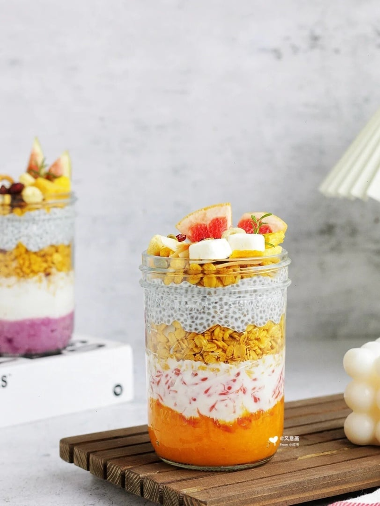 楊枝甘露除了用喝的,也能做成「吃」的甜點!风意画在小紅書分享的這杯「奇亞籽楊枝甘露燕麥杯」,減脂期可以在裡面加一點麥片,如果可以快樂吃就加玉米脆片,不僅能讓口感更豐富,外觀也多了一種層次感,看起來又漂亮又好吃。夏天沒食慾時,來上一杯超幸福!