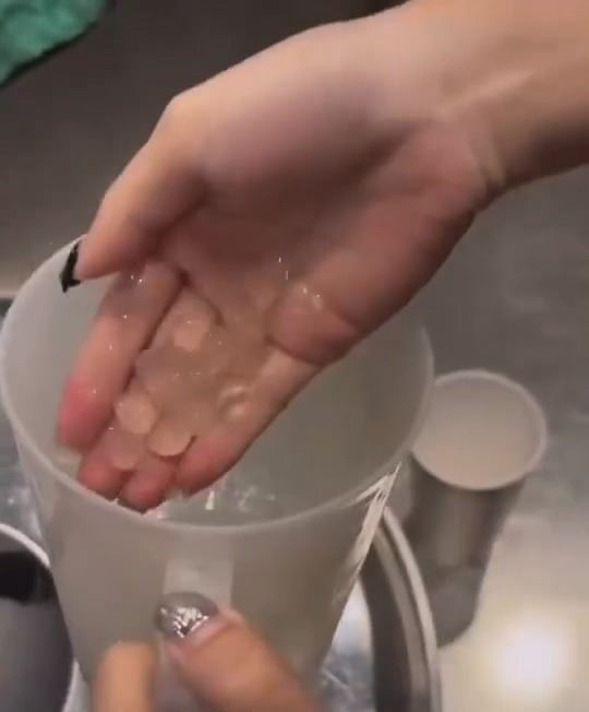▲女店員朝手掌吐口水,接著徒手混合飲料及配料。(圖/翻攝畫面)