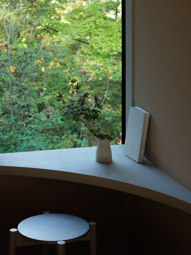 森林成為了客廳的一部分;室內和室外之間的界線變得不存在。每扇門窗都像是一幅森林的寫實畫作,也將森林的景色無限延伸進室內。方圓型步道像是畫出了一個區域,卻沒有畫地自限的囚禁感,反而是建築物的延伸感,讓人會想沿著步道走近山林間。