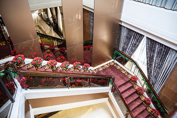 【圖說】梯廳牆面採用反射鏡面,視覺隨高度延伸,空間更顯寬廣大器。