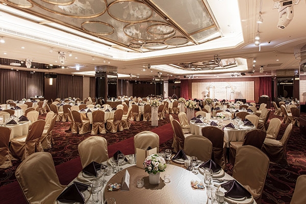 【圖說】位於二樓共有二間宴會廳-富麗廳及富貴廳,兩間會議室打通可容納60桌,適合舉辦記者會、婚宴、會議、各項活動聯誼等聚會。天花板燈的曲線與反射鏡面呼應設計師的設計元素-「潮漲之水」。
