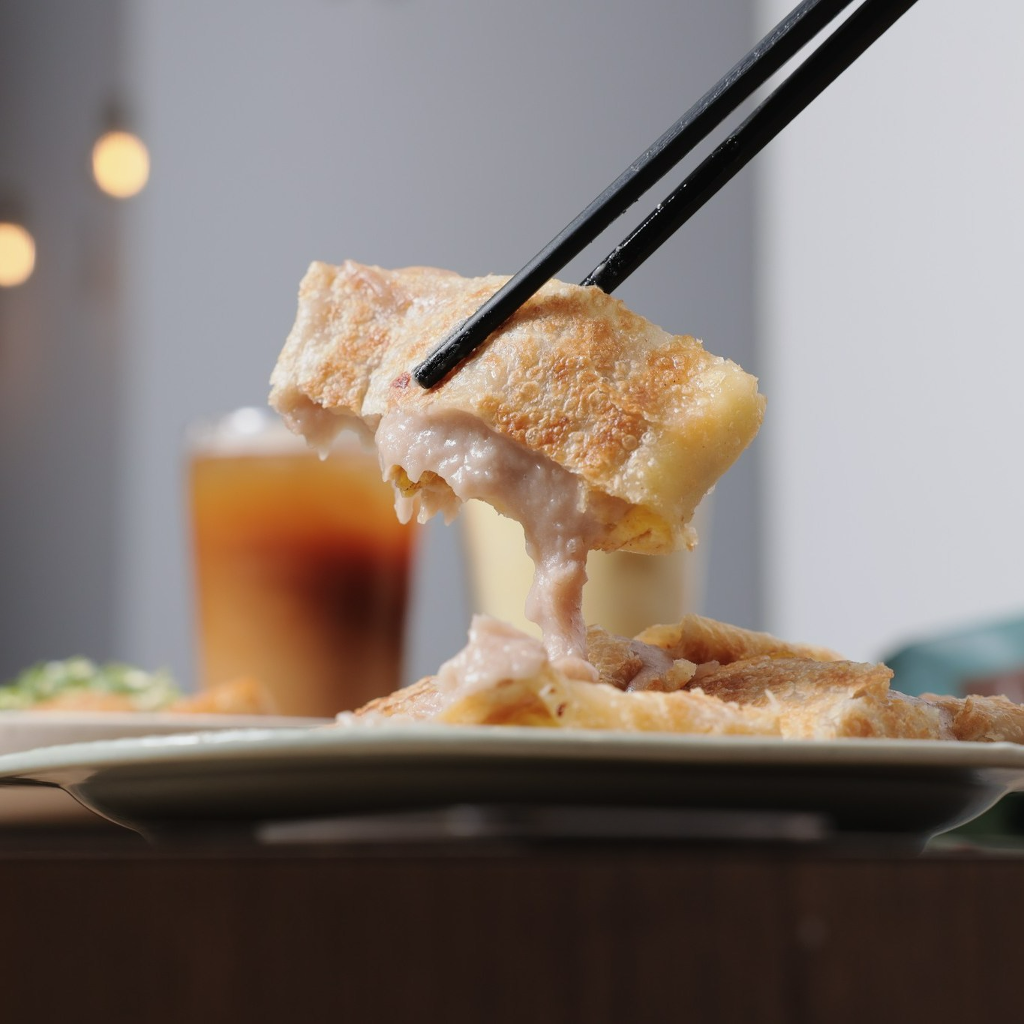 「芋泥蛋餅」選用開元冷凍芋泥,鹹中帶甜的口感是許多人的心頭好!