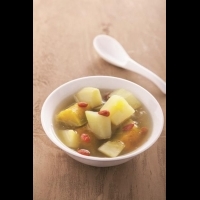 3.將作法1、2材料一起加入湯鍋中,與調味料水一起煮約15分鐘後,再加入砂糖攪拌勻,最後加入枸杞即可。