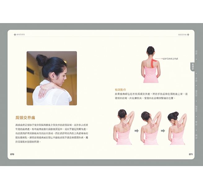 依部位及發生疼痛、痠痛的區域分類,讀者可以清楚對照自己的痠痛點,透過檢測立即找到問題肌群,使用按摩、刮痧、伸展、肌耐力訓練等方法,快速解決好簡單!