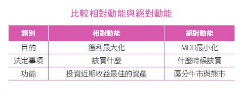 我們可以透過相對動能,決定要投資哪一種風險資產; 透過絕對動能,決定是否要投資風險資產,還是要先緩緩, 繼續持有安全資產。
