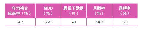 ❶年均複合成長率:靜態資產配置通常伴隨著較高的個位數年均複合成長率,60/40策略的報酬率也有達到這個水準,算是令人心滿意足。