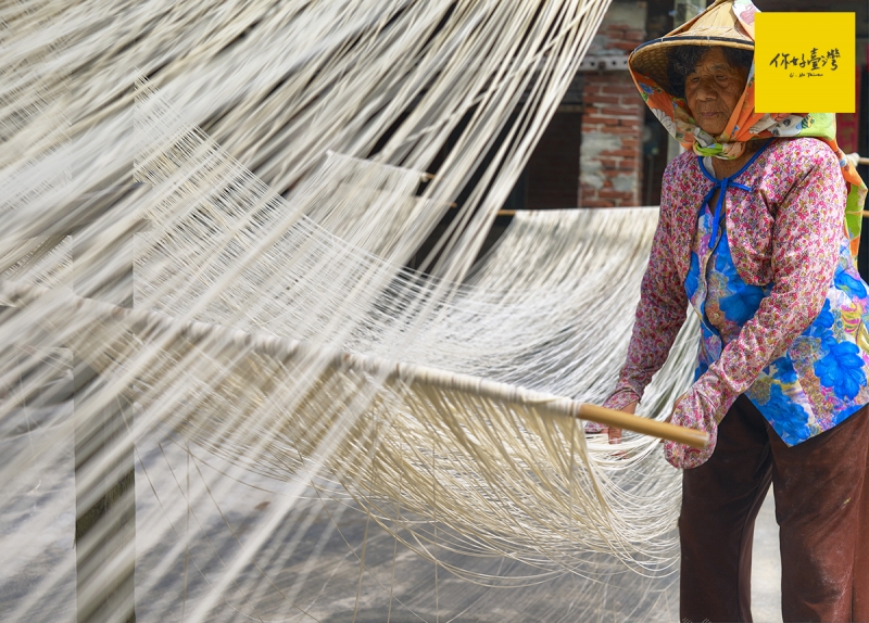 福興,靠海的小鄉村,早年也曾是手工麵線的重鎮。當機械化生產的風氣興起,越來越少人願意繼續傳承這份耗時費工的職志。然而,林張玉枝依然在天光未明時起床,揉拉麵條,以雙手的溫熱喚醒麵團,接著藉陽光曬麵,再經柴火炊煮數小時,才能完成健康的手工麵線。