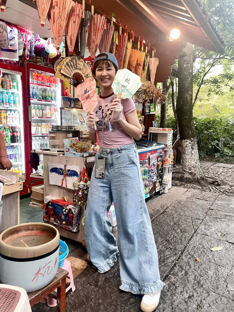 不只到各景點觀光,曾沛慈也體驗了手作扇子,總共做了兩支扇子,