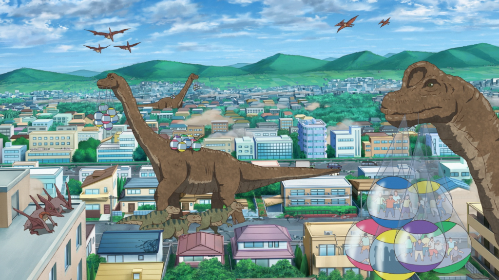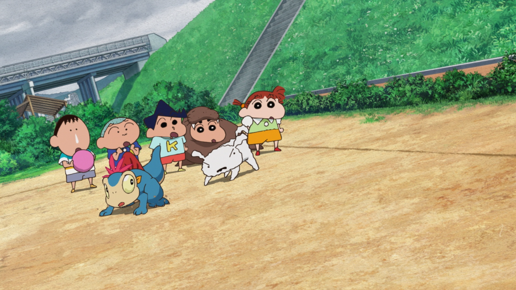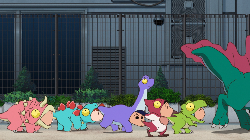 ▲ 《電影蠟筆小新:我們的恐龍日記》故事圍繞著在現代復活的恐龍主題樂園「恐龍島」發生。(圖:車庫娛樂)