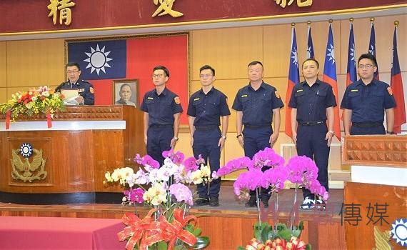 ▲第一分局新調任所長-左起陳聖傑、吳肇益、鄭嘉益、陳彥丞、謝承哲。
