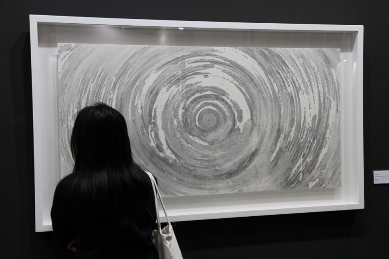 TKG+於今年香港巴塞爾展間,為新銳藝術家蔡佳葳量身打造展區,呈現裝置藝術《滴水穿石》與「自虛空中迴旋而來」系列畫作。TKG+ 表示,在香港巴塞爾這樣的國際展場,如果只展一件作品,很難讓觀者了解年輕藝術家的創作脈絡。