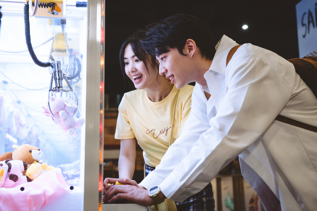 ▲ 雷嘉汭和黃信赫玩夾娃娃機。(圖:CATCHPLAY)
