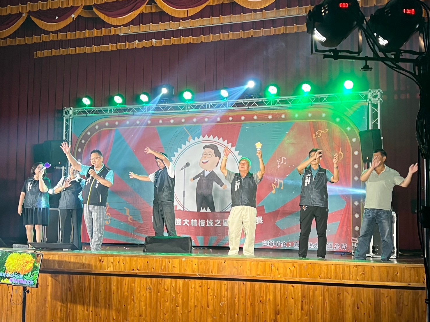 〔News586/記者李芷妍報導〕第二屆大林鎮慢城之星歌唱大賽於8/24日在大林國小育英堂快樂舉行,在去年首屆亮點開唱後,今年有更多愛唱歌的鄉親來報名參賽,比賽分為社青組和長青組,共計有100人歡喜來唱歌,從上午8點開始飆歌,加上戶外美食文創市集熱鬧擺攤,大家一起聽好歌嚐美食,場內場外均吸引許多民眾共享盛會,而喜歡音樂、愛唱歌的許有疆鎮長,以他感情豐沛的渾厚歌聲帶動比賽氛圍,本身也是歌唱愛好者的許有疆鎮長表示,唱歌有助身心健康、抒發情感、陶冶性情、強化自信心,並能增加人與人之間的互動,提高社交功能。
