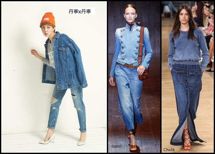 大膽的使用丹寧類的單品吧,沒有身材風格上的限制,任何女孩都可以巧妙的搭配。從丹寧外套、丹寧長褲、丹寧短裙,通通搭配再一起也不奇怪,反而是今年最Hit的風格唷!
