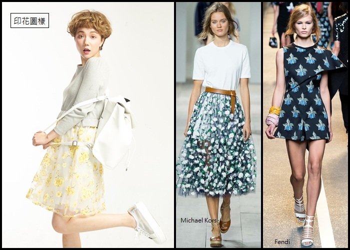今年的印花圖樣走的是氣派路線,顏色繽紛飽和,更能引起注目。除了飽和色彩之外,融入白色素材的印花則是走透亮的路線,更能呈現出春天的浪漫氣息,搭配丹寧or休閒鞋也不會出錯唷!