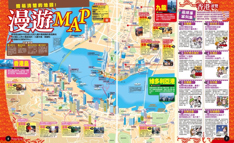 當然還有香港觀光重點的夜景特集。更介紹了在尖沙咀等熱門街區逛街的地圖指南。並包含豐富的澳門情報!