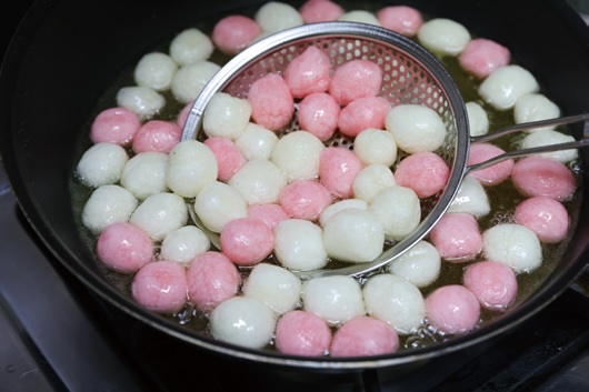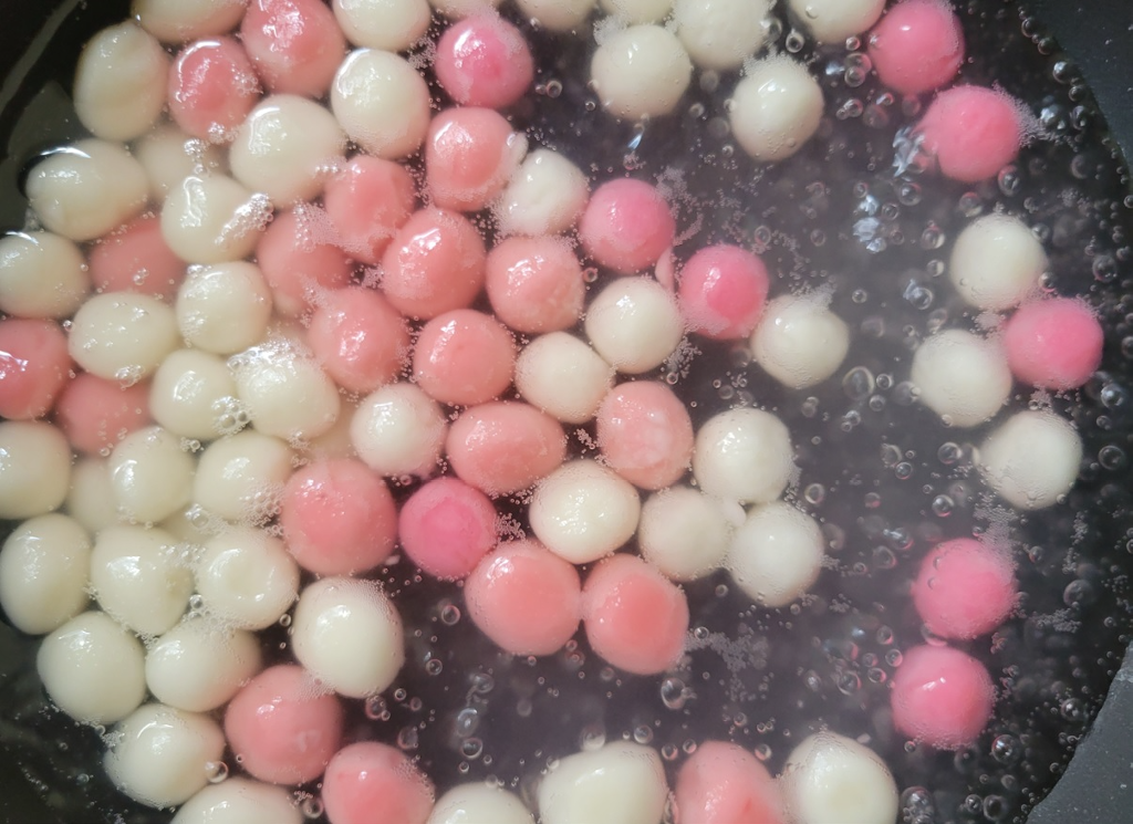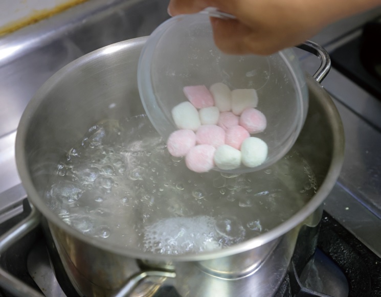 5. 煮一鍋滾水,放入湯圓,待水滾沸後轉中小火,稍微攪拌,待湯圓浮起、微膨脹後撈起,搭配糖水或甜湯享用。