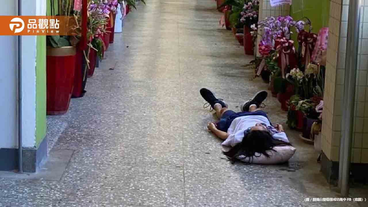 成功高中學校熱食部上周五突然貼公告,不讓學生在午休時間,中午12點30分至13點買午餐,引起學生不滿,甚至有學生午休時間躺在校長室門口抗議。