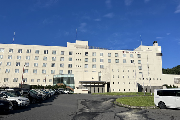 「龜之井飯店青森馬門」位於下北半島入口的野邊地町,曾獲2023溫泉旅館‧飯店總選舉東北地區的季軍殊榮。飯店備有多種房型,除了傳統榻榻米和式房之外,也有西式房間可供選擇。大量使用青森檜木的大浴場及露天溫泉中,飄散著來自森林的清香氣息。餐食部分則以在地食材為主,也提供許多當地的特色料理,例如吃青森蘋果長大的品牌青森蘋果豬、扇貝味噌貝殼燒等。