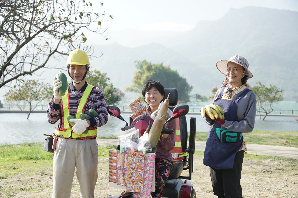 ▲ 《在光裏的人》柯淑勤(右)、謝其文(左)與杜蕾(中)飾演住在嘉義大埔的一家人。(圖:大愛電視)