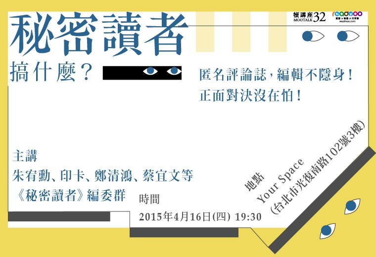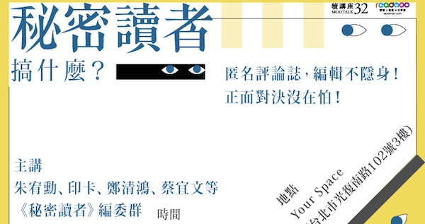 主講:朱宥勳、印卡、鄭清鴻、蔡宜文等《秘密讀者》編輯委員群