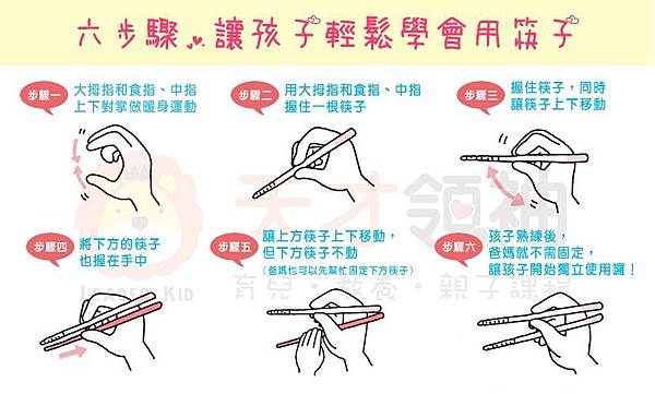 不過相信有不少家長會有疑慮,我拿筷子姿勢就算不標準,還不是活得好好的!沒錯,只要能有效率的吃飯夾菜就好,如同握筆一樣,不標準不是甚麼大錯,但通常標準姿勢意味著能讓對的肌肉做對的事情,所以會比較省力有效率,因此在小學前還是會建議讓孩子學習正確的拿筷子或握筆的方式唷!