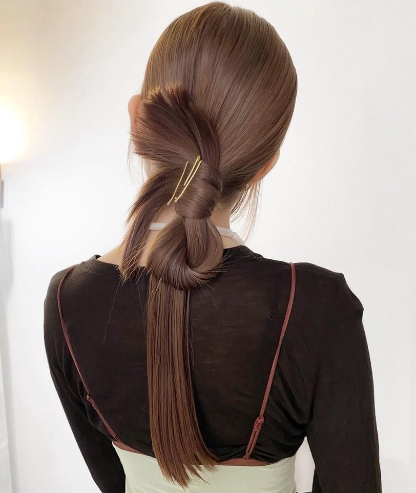 看起來超美味的餅感米褐色!屬於偏暖調的髮色,學生黨到上班族都很適合染,在米褐色的基礎下加入偏黃的暖調棕色,使整個髮色呈現如同蝴蝶餅乾的顏色,同時因有米褐色的基礎,整體看起來柔潤、有奶霜感,全放下來有溫柔小姐姐感,綁起來呈現工作上俐落幹練個性又好的女強人之感,是一款風格極多元的髮色!