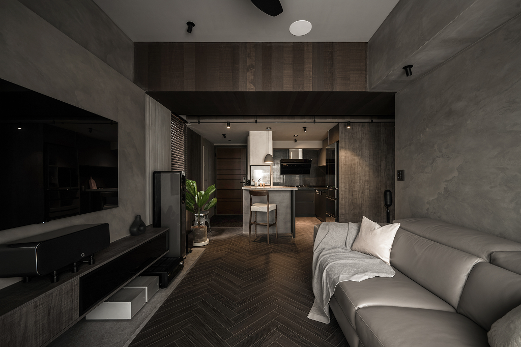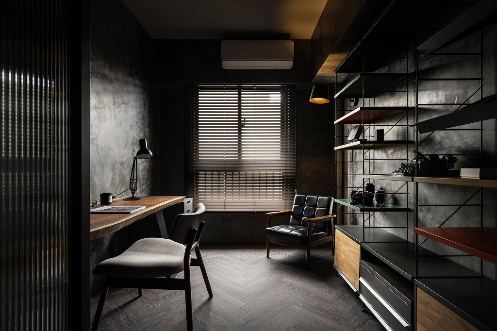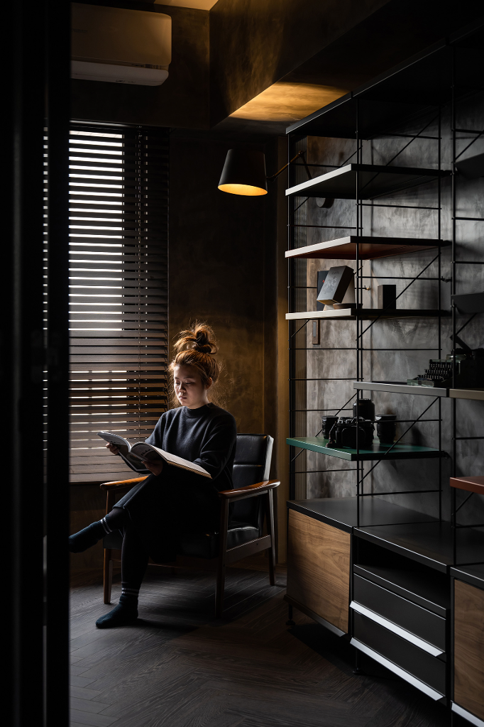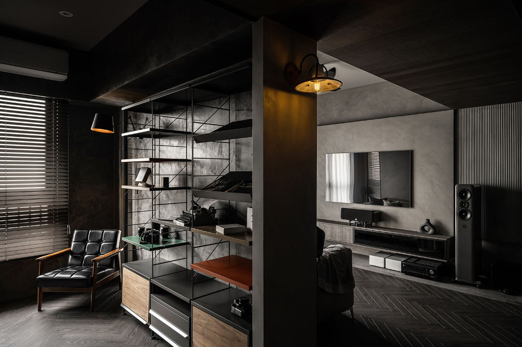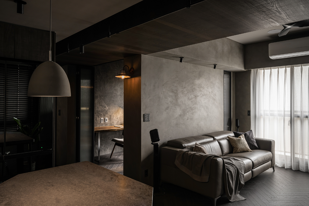 同時出於屋主對於工業風的喜愛,設計師遂在規劃空間時加入金屬、皮革、玻璃等元素,再透過燈光、家具等軟裝搭配,進一步提升整體居家的精緻度。考量本案室內面積僅17坪,必須藉由設計手法與動線布局營造出開闊度與舒適性,原本2房2廳的配置在客變時加以調整,使之更為符合屋主需求,例如將書房移動至更適合的位置,並將管線安排在過道天花,同時針對採光部分,優化自然光的運用,減少人工照明使用,以節省能源且兼顧隱私與安全的需求,包含天花與牆面上的軌道燈和壁燈則有效形塑獨一無二的多層次光影效果,營造柔軟溫馨的生活氛圍。