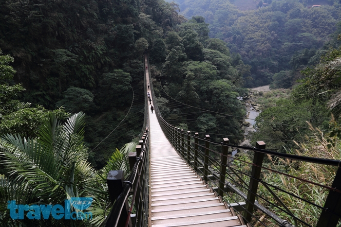 竹山知名的太極峽谷由加走寮溪切穿山塊形成,垂直下切造成近400公尺的落差,地勢險峻因此有「西部太魯閣」之稱,而竹山天梯便是連接峽谷兩邊的吊橋,為什麼稱為天梯?因為峽谷兩邊地勢落差太大,使得吊橋兩頭的高低差也多達20公尺,相當於六層樓的高度,於是橋面必須以階梯的方式來減緩落差,從低處往高處看就好像通往天空的梯子一般,據說是世界上第二座階梯吊橋。從太極峽谷的地形就知道要挑戰竹山天梯可不是件輕鬆的事,售票口走到天梯入口就大約要40分鐘,沿途一路下切約300公尺縱深,若要走到終點「玉福吊橋」則大約要再下切200公尺,來回路程至少三小時。